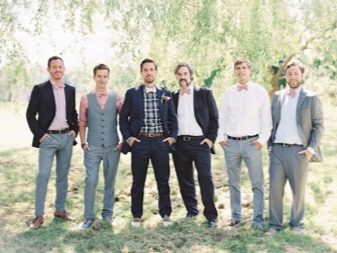 Since there are close and distant relatives of two families at the wedding, everyone tries to look as good and as elegant as possible. Older men most often follow strict suits. Young people can afford a more democratic and free style.