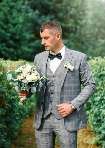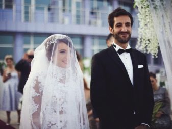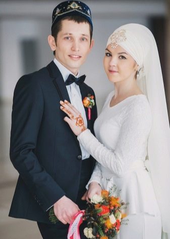 A more solemn look gives "butterfly" instead of a tie and boutonniere in his buttonhole. Sometimes the groom puts on the skullcap.