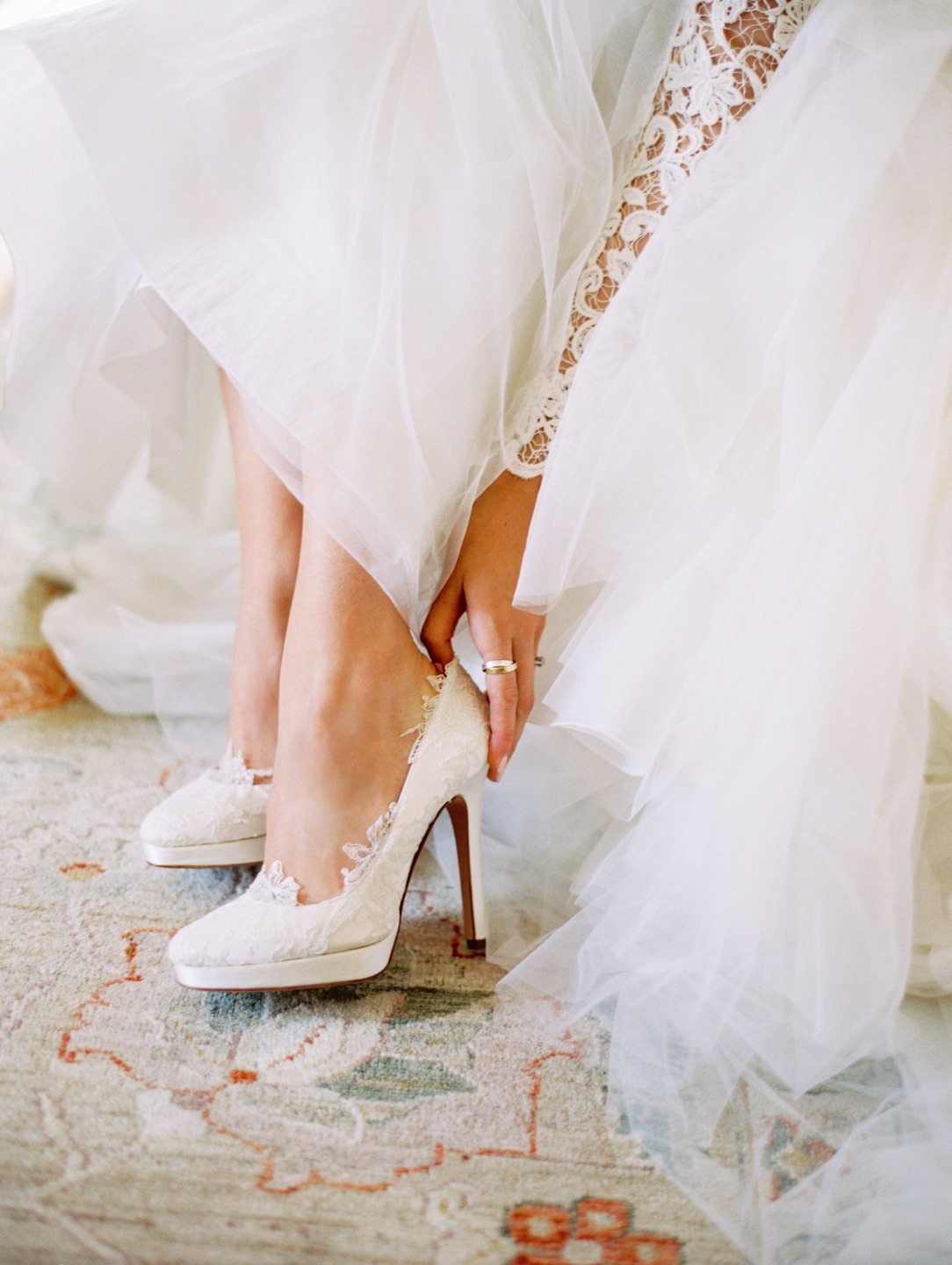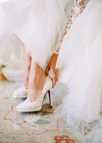 When approaching the wedding procession to the house of the groom, the bride takes off her shoe. So she warns of her arrival. On the threshold of the groom's house, she breaks the plate lying there with her foot.