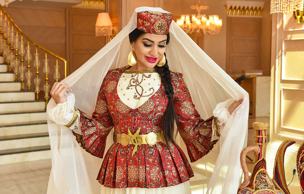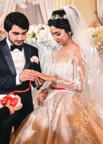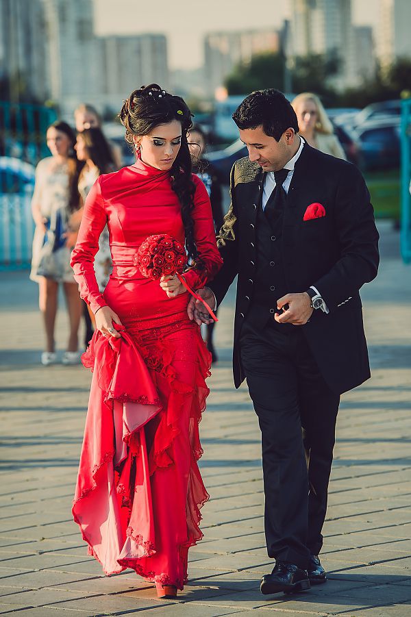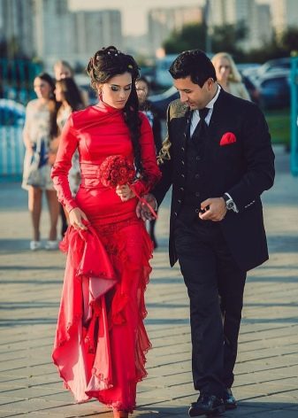 Azerbaijani brides and now can wear national bright red outfit or choose a dress of some other color. The dress should look modest, but beautiful and luxurious. It is sewn of expensive and exquisite fabrics, decorated with embroidery, lace and other decorative elements.