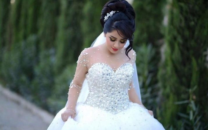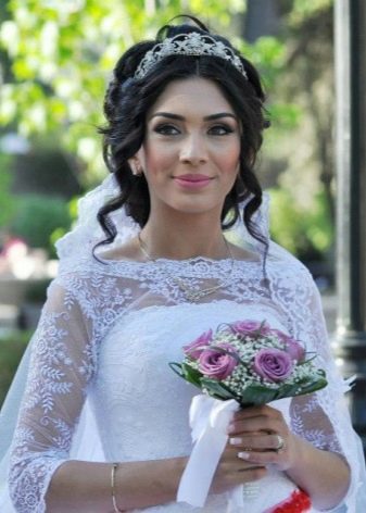 The wedding decoration of the bride is characterized by the brightness of the dress and makeup, the splendor of her hair. An obligatory element is a lace veil, often brides wear a crown, earrings, necklace, pendants as an ornament.