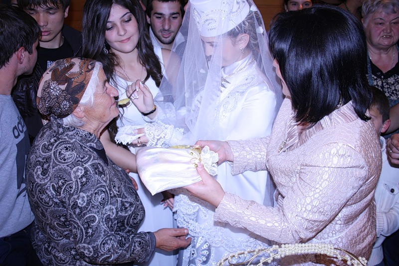 At the wedding celebration young decided to give money. Before entering the house or the room where the wedding takes place, a specially decorated box or box is placed where guests drop some amount of money. It may be different, but it is not accepted to give less than 50 manat. In addition to money, the groom's family gives a young set of jewelry.