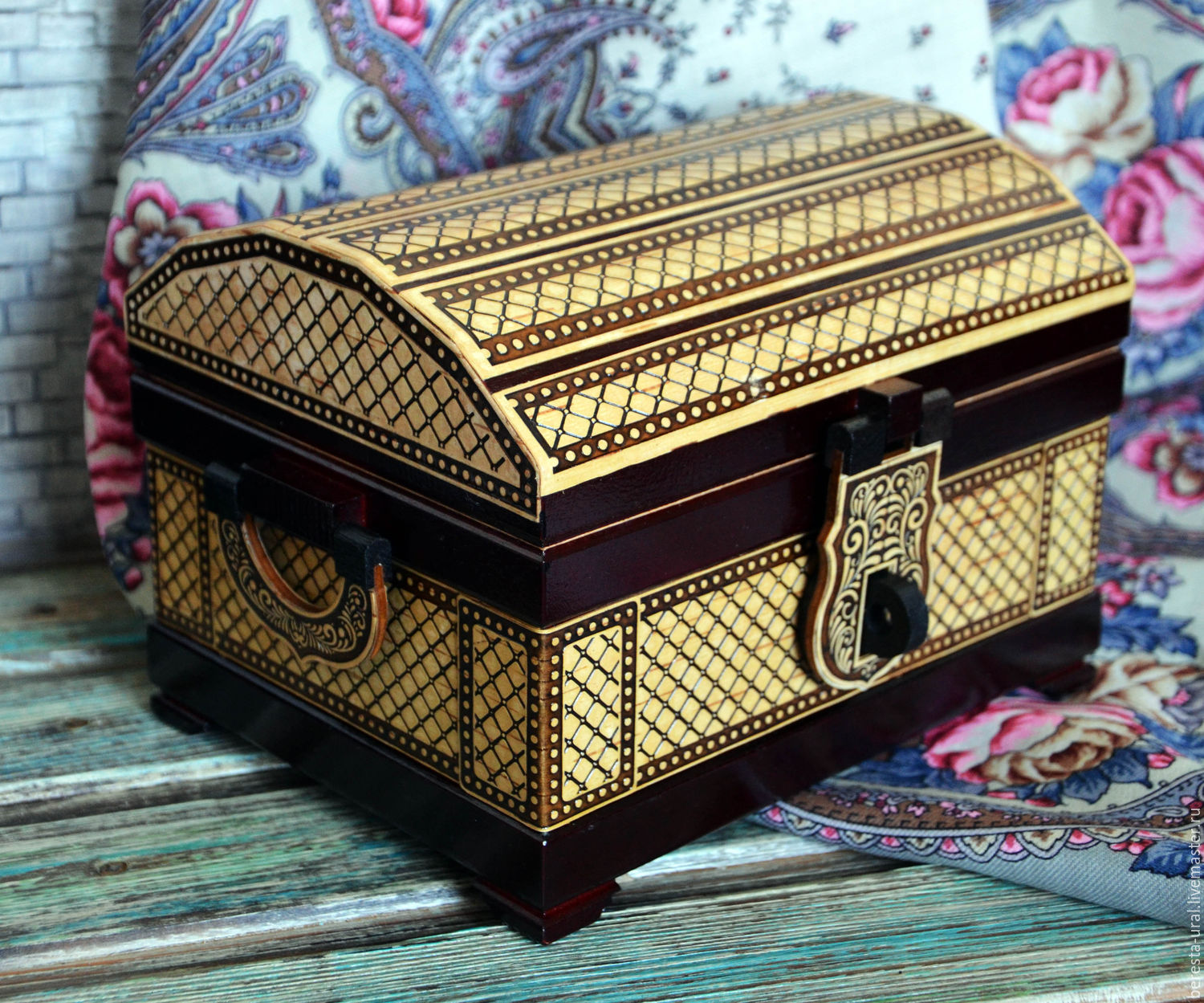 Large gifts are put in chests, which are tied up with red ribbons, and small ones are put on decorative trays.