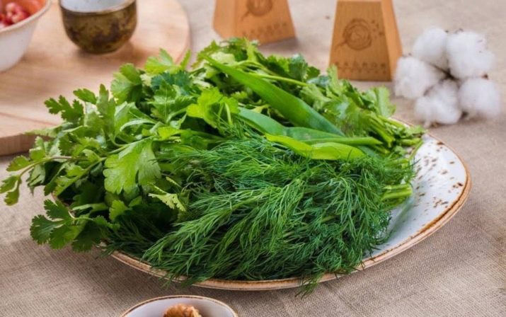 An integral element of each dish is juicy and fragrant greens in large quantities.