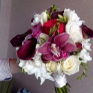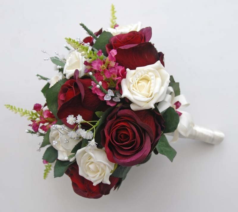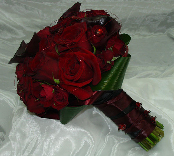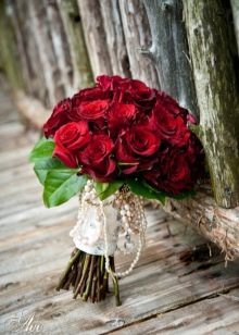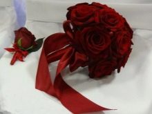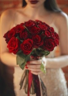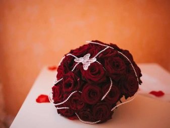 When buying a wedding bouquet, the choice of brides most often stops on roses, which is quite natural, because this classic flower is a symbol of love. In modern flower shops you can find a huge variety of varieties of this species. A bouquet of burgundy roses symbolizes a deep passion, dignity and reverent attitude of partners to each other. For a small wedding fit small and medium buds that emphasize the refinement of the bride. In the case of crowded celebrations and the choice of a magnificent dress, it is recommended to take larger varieties so that the bouquet is not lost against the background of other details.