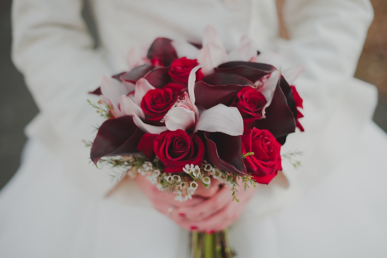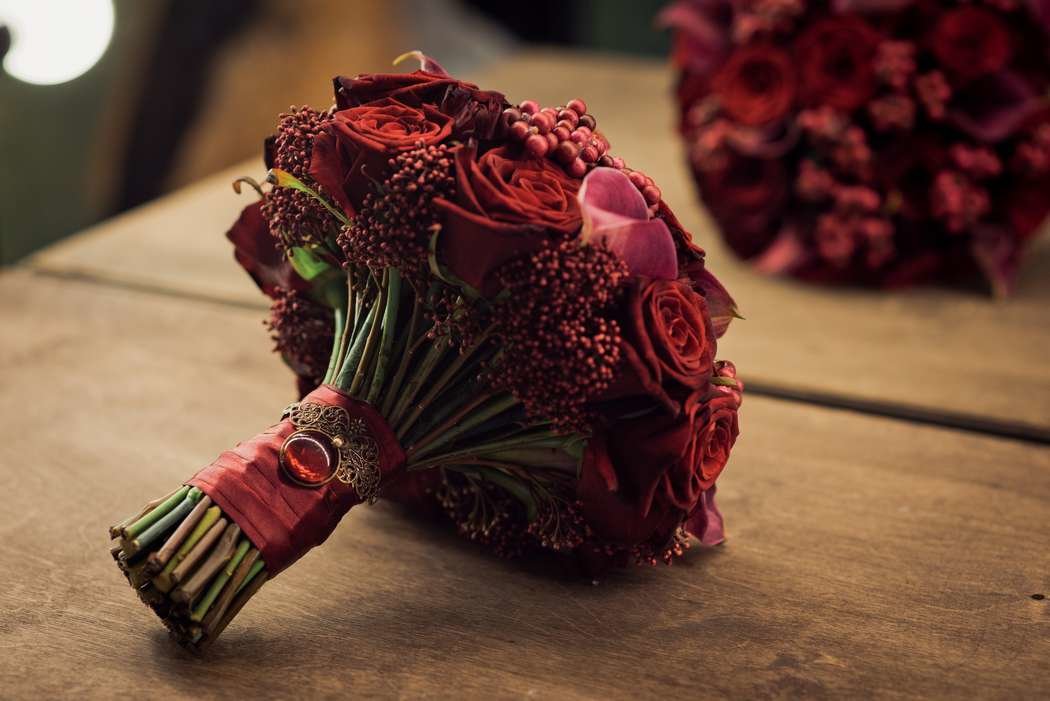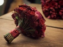Marsala color has become popular relatively recently, but has already managed to occupy an honorable place in the wardrobe of many fashionistas. Gradually, fashion began to shift from clothes and shoes to other items, including flowers. A burgundy bouquet can be rarely met as a wedding, but if the bride still decides to carry it in her hands, her admiring glances are guaranteed. As a rule, flowers convey the inner state of the couple. This shade of wedding flowers will tell about sensual passion and love.