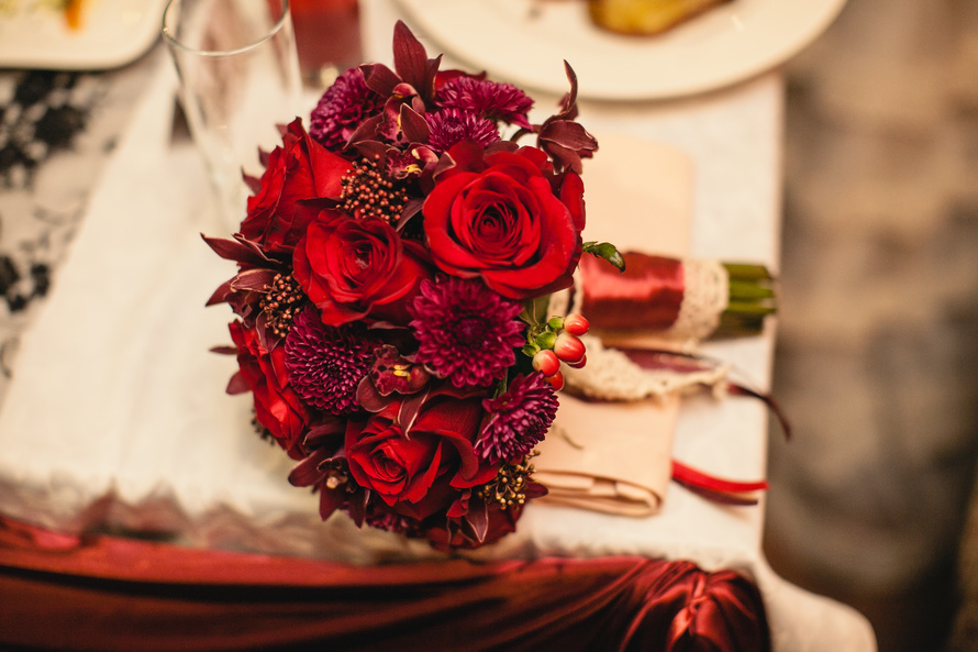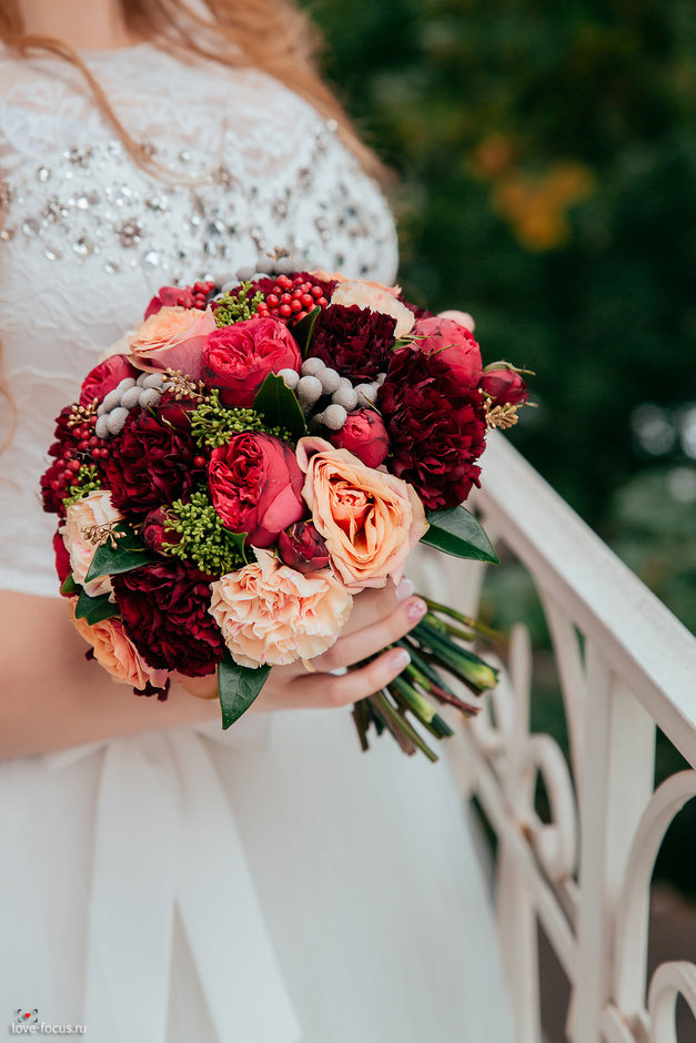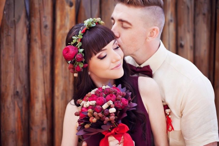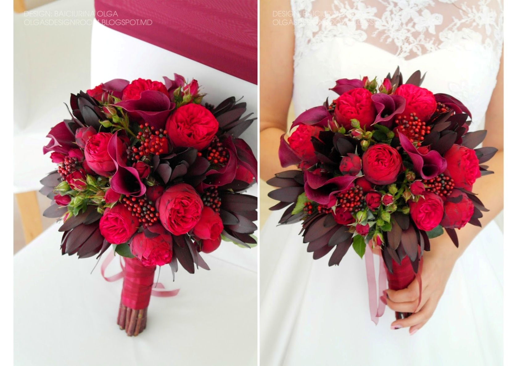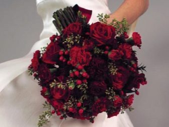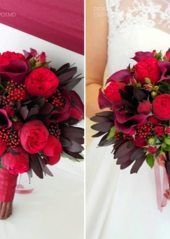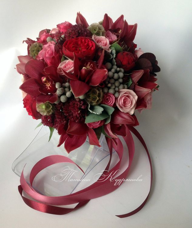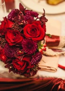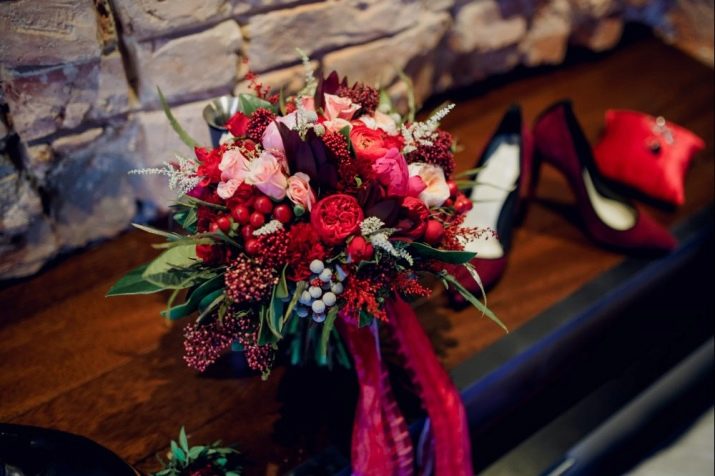 If the burgundy color is not enough, you can add berries, leaves or artificial decor to the bouquet. By the way, at the request of the bride florists can paint any artificial flower in the desired shade. Let's talk about some vibrant colors in more detail.