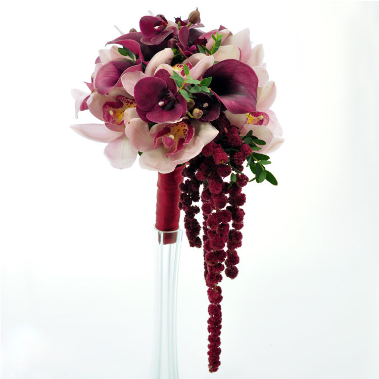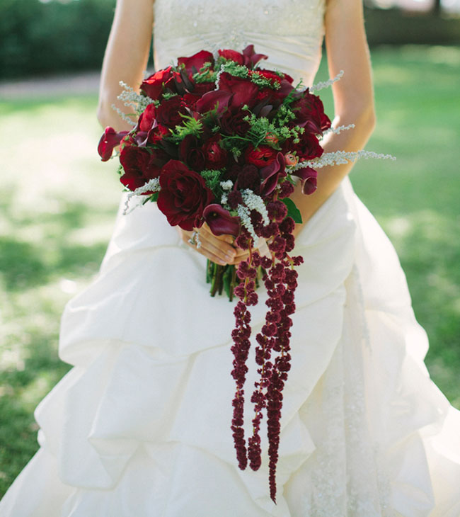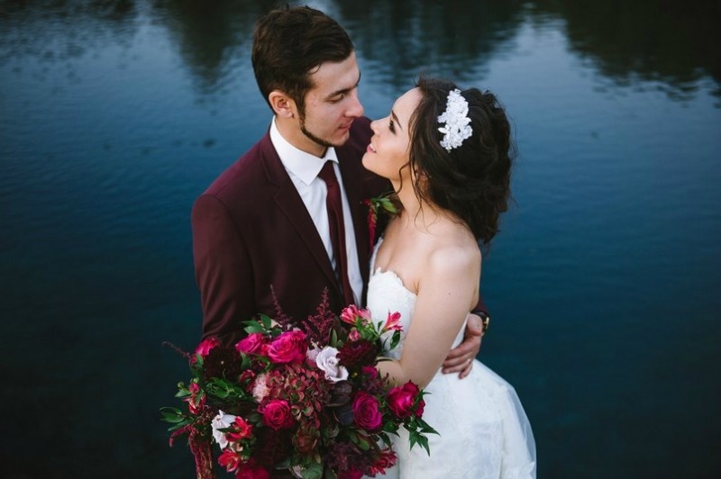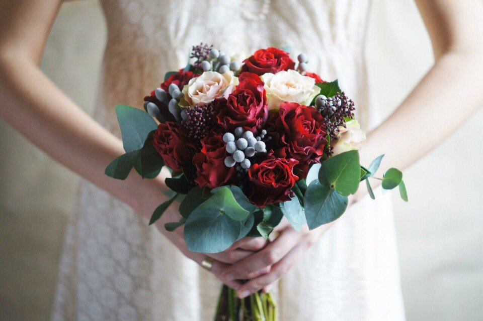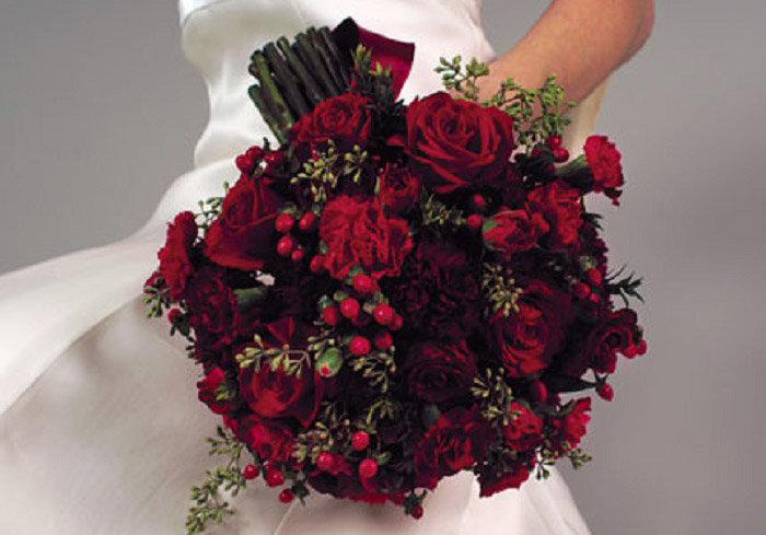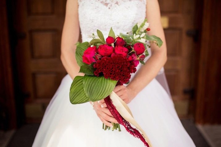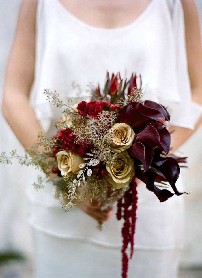 Florists consider flowers of this shade to be an excellent option for a wedding held in the fall or winter. It is also suitable for the summer event, but only at the very end of this season. If the bride wants a spring wedding, then the shade will have to be diluted with lighter and lighter colors. By the way, not every woman will suit a bouquet of this color range. As a rule, it looks organically in the hands of bright brides with dark hair and fair skin. It will suit the red-haired ladies, but only owners of cold hair.