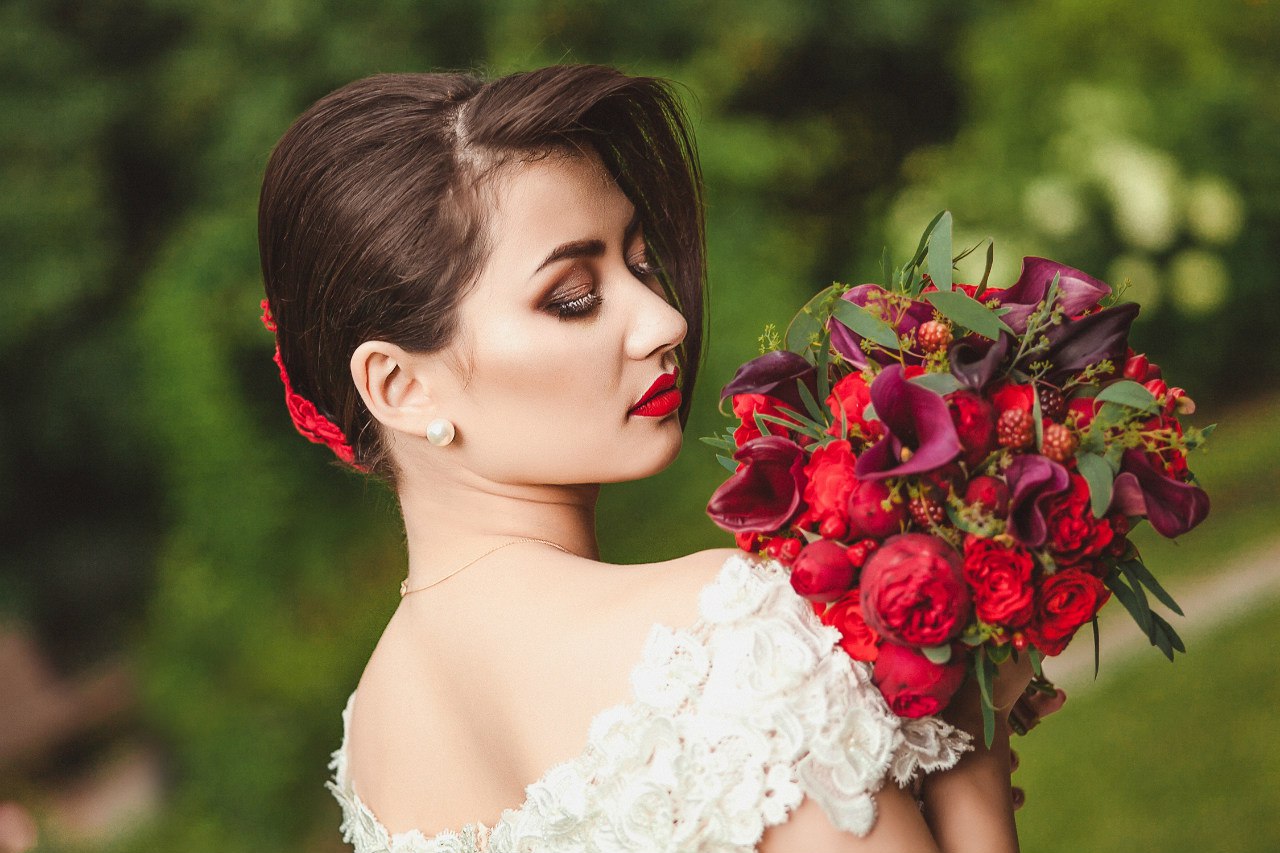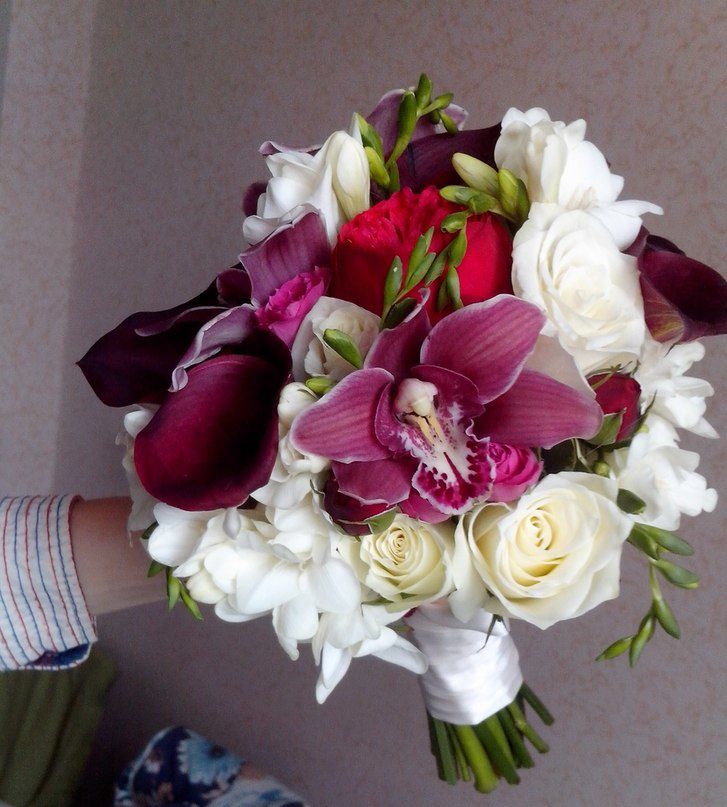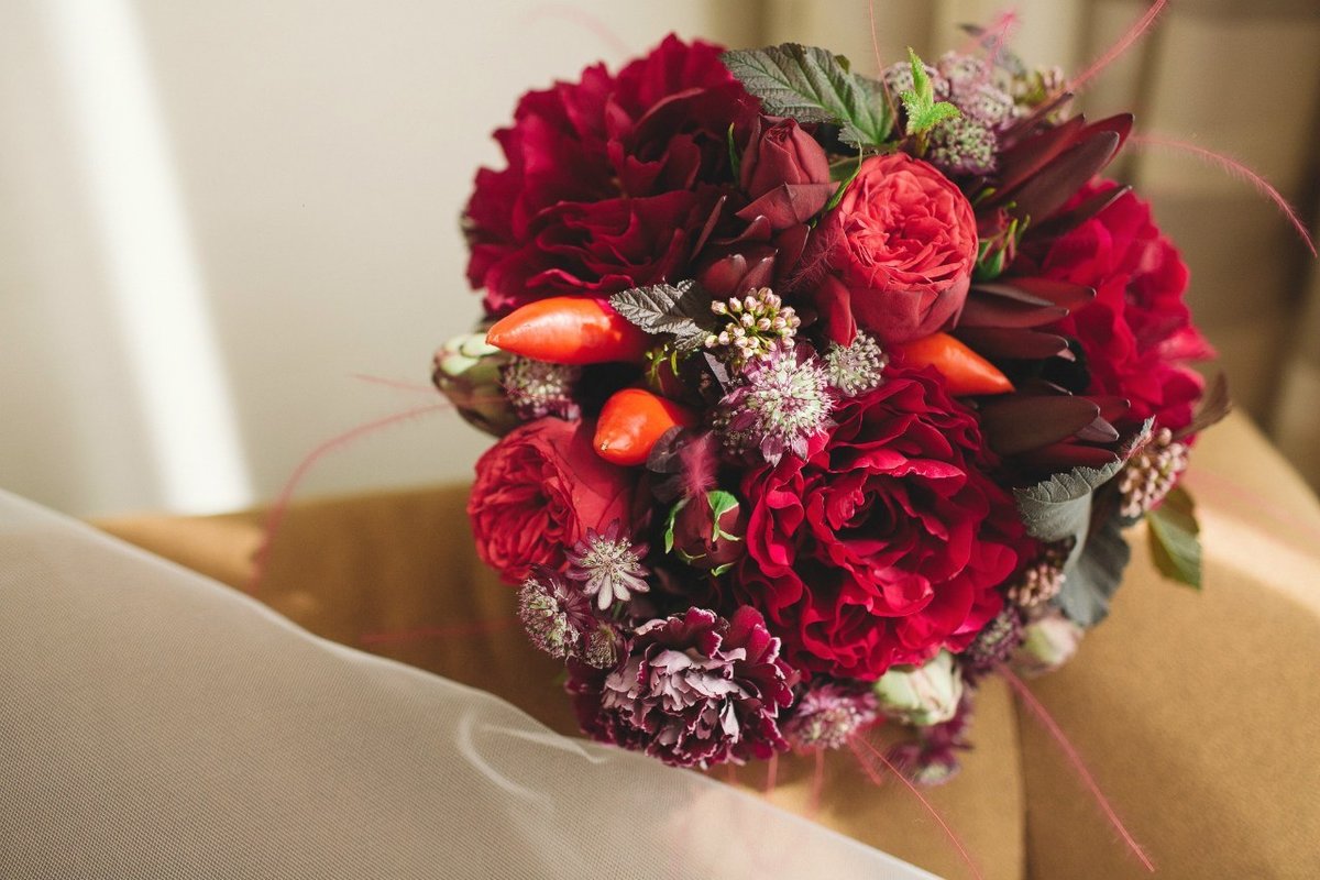 When making a wedding bouquet, florists advise to focus on the scope of the celebration and the style of the dress. It is desirable to create an image of the future spouse in the most restrained style without unnecessary details, so that the bouquet visually does not have competitors. If the bride wants to look elegant, calla and orchids of Marsala color will be an ideal option. Passionate and peonies suit the passionate image, preferably bush. You should first study the properties of plants and just in case have a spare bouquet if the buds are dry.