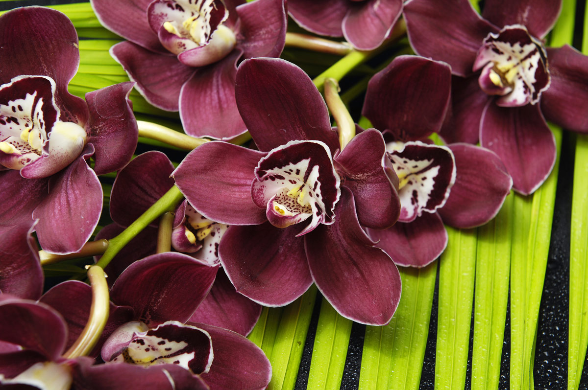 The orchid since ancient times is considered a symbol of fertility, luxury, well-being and passionate love. Marsala is the perfect shade for this species. Beautifully decorated bouquet with burgundy orchids is a work of art. The external fragility of the plant is deceptive. The orchid is a rather resistant flower, it will look perfect from morning to evening.