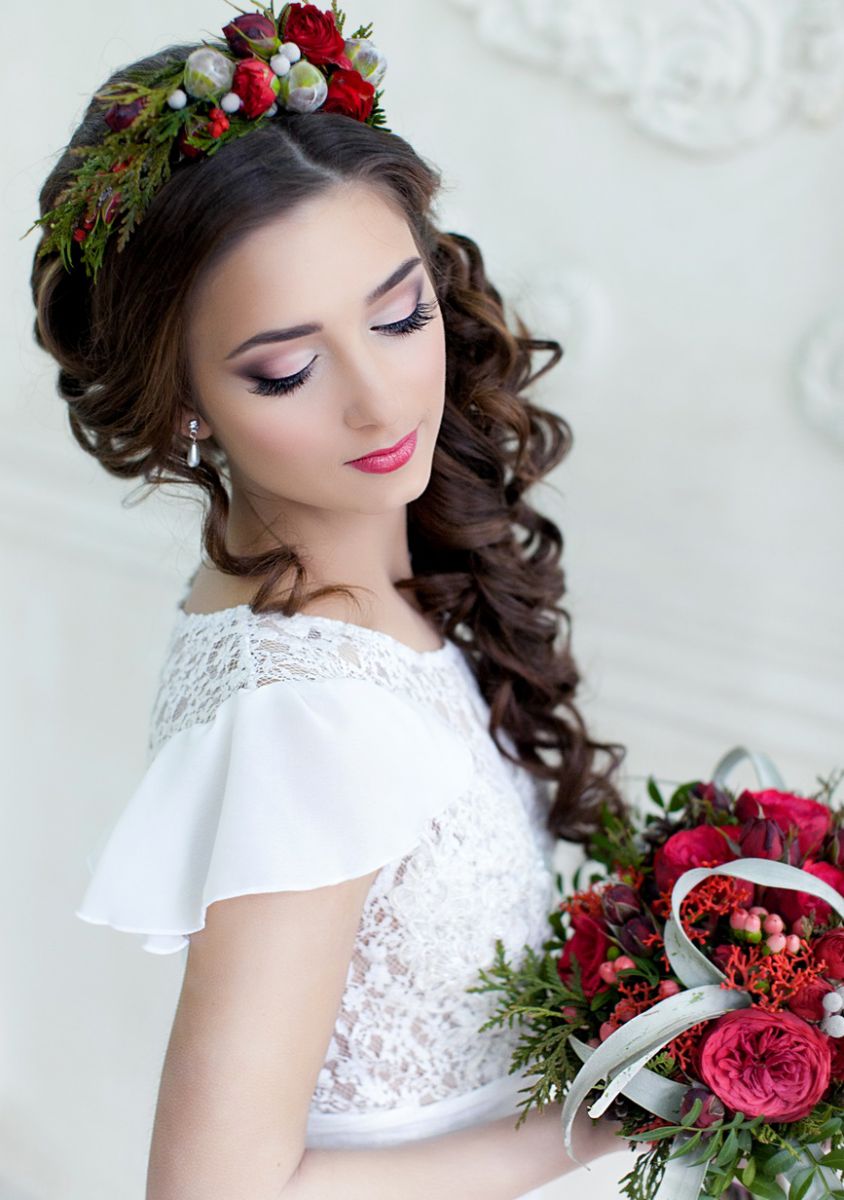 A little tint of Marsala is recommended to put on the face and hair of the bride. Light shades or lipstick of wine color and a pair of invisible women with bordeaux flowers will perfectly complement the wedding look and make it whole.