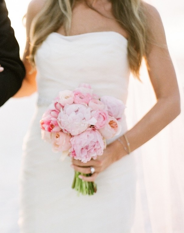 Thanks to the pomp and charm of peonies, they are great for creating mono-bouquets, without requiring even a large amount of decor or greenery. Pink peonies will help to emphasize the romance and hills of the young lady.