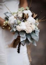 There is no limit to creativity, and an experienced florist can easily cope with the creation of any of the selected bouquets. He will help you with the choice of the composition of your wedding masterpiece, will prompt the correct combination of colors in perseverance, correctly process the flowers and decorate the bouquet so that it will please you some time after the celebration.