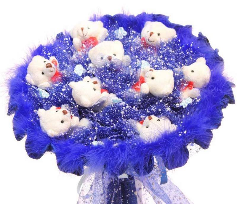 Use soft toys in a bouquet can be in a composition with candy and fresh flowers.