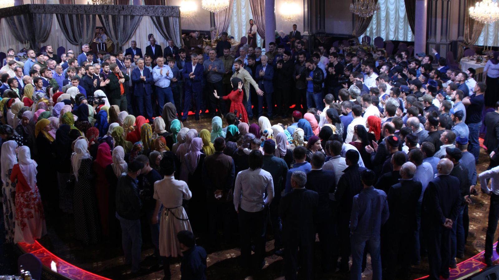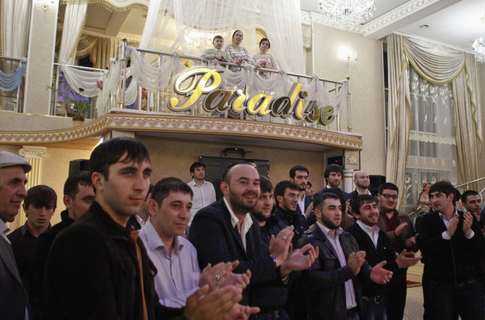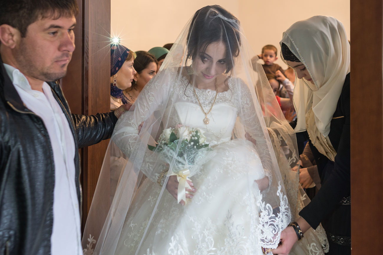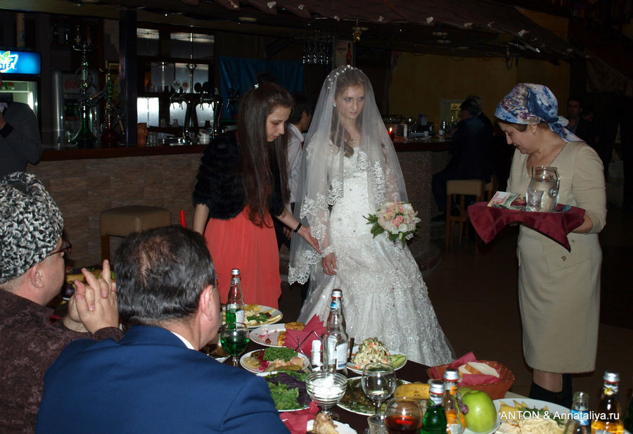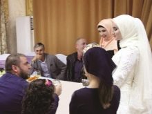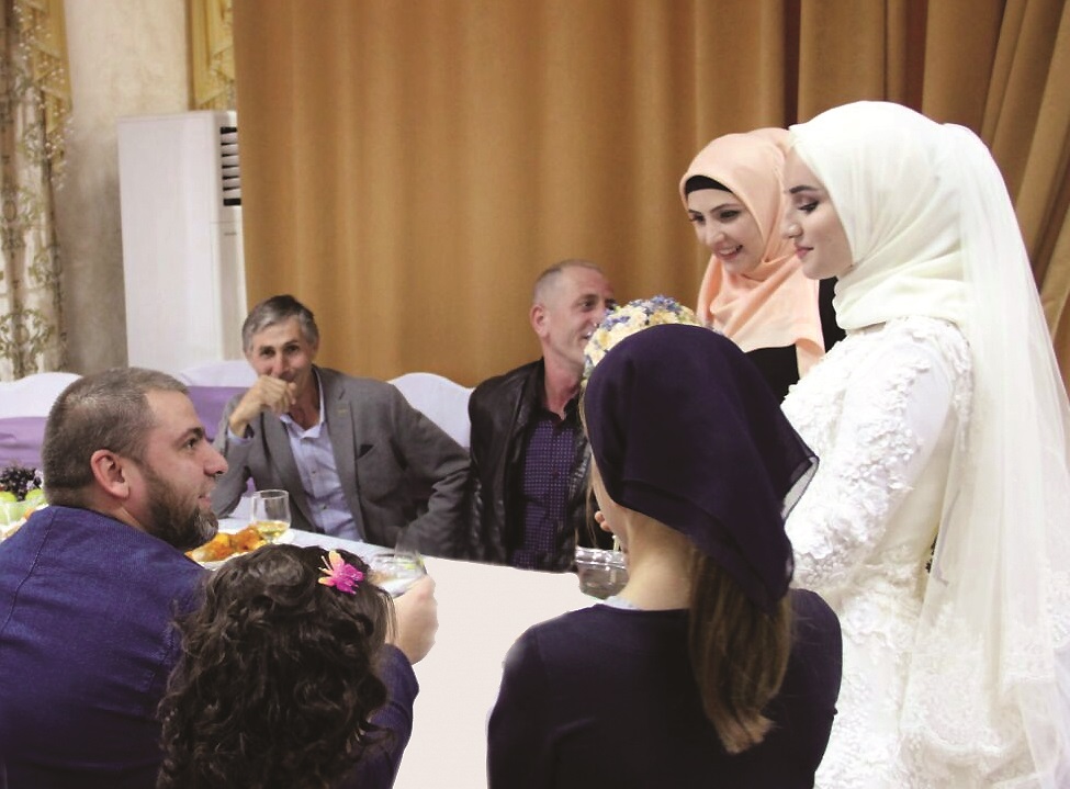 According to the customs, male relatives should shower the girl with money and candy, and then pour a mixture of honey and butter in a spoon and give her mother-in-law first a drink, and then the youngest. At this moment, shots are usually heard that are intended to scare away evil spirits. It can only be a bogus gun, since firearms in Chechnya are officially banned. The traditionally Chechen weddings are held in a restaurant, so the best man takes the girl from her husband’s home and leads to the festive event, where, in accordance with tradition, her place in the corner is reserved for her.