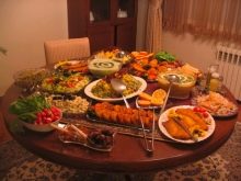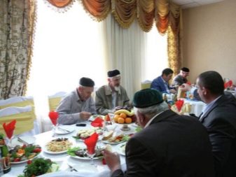 At the table, men also sit apart from women, while they are arranged according to seniority. Small children have no place at all - they spend time near the set table. The bride's family usually does not take part in this event, so for them such a holiday is rather a sad event.