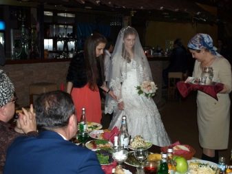 It must be said that the ceremony of celebrating marriage for a girl is rather difficult: despite the fact that everyone can come to the wedding, the very young person herself is obliged to be in the far corner, while she is forbidden to drink, eat, or even move. From time to time, a friend or relative may approach her, but only the mother-in-law or sister-in-law can sit at the table, and then at the very end of the ceremony, after removing the veil from her.
