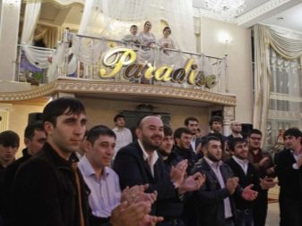 But the young spouse does not catch the eye of the wedding guests at all: he celebrates in a separate room with his closest friends. All other guests are located in a large hall. Usually the event is held by imal-tamala, who leads the process, he also announces the beginning of the dance. Usually the dance floor is divided into two zones: ladies in one part, men in the other. Joint dances are not allowed here.