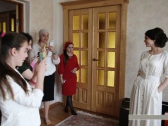 After that, friends of the husband and native girls are seated at a meal so that the girl’s family is on the one hand, and the boy’s friends are on the other. At the same time, the man himself must stand at a distance, his head bowed dutifully. It is in this position that he needs to stand all the time while the feast is going on, and if children approach him, they should definitely be treated. After a few hours, the women take the husband to another room and already there offer him treats.