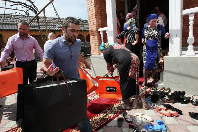 At the end of the holiday at the Chechen wedding, it is customary to give gifts. Usually they are selected based on the status of the young spouse: the higher he is, the more expensive the gift should be. In previous years, household appliances, carpets, and livestock were most often given. Nowadays, preference is increasingly given to money so that the couple themselves can dispose of the funds and get what they need.