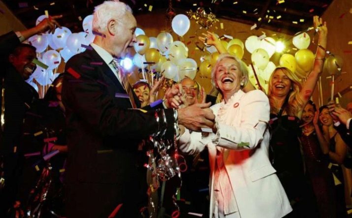 Just like at the wedding, the golden "newlywed" throws a bouquet, only all the present women catch it. If a girl is not married, then it foreshadows a quick wedding, if this is a married woman, then she will also celebrate 50 years of marriage. They give gifts of gold or gold with the use of gilding - furnishings, dishes, interior design, elegant jewelry.