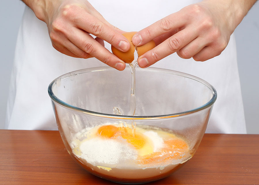 - Shake eggs with a mixer and gradually add granulated sugar. When the mass becomes homogeneous, warm milk is poured in there, and oil and salt are added. Everything is well mixed. Then add yeast to the mixture and beat again with a mixer.