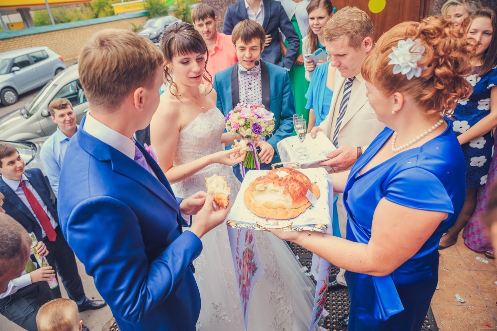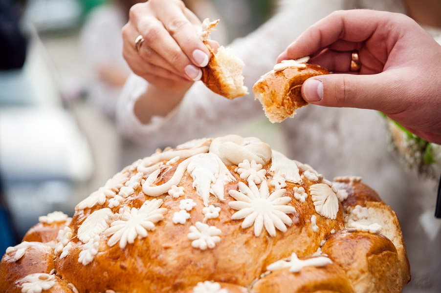 At the end of kind words, the phrase “advice and love” is required, which is a prerequisite. After the parents have fulfilled their roles, it is the turn of the bride and groom. In a sign of gratitude and respect, the newlyweds bow to the host party, and the guests applaud. And already after they taste the wedding loaf according to tradition, without the help of hands.