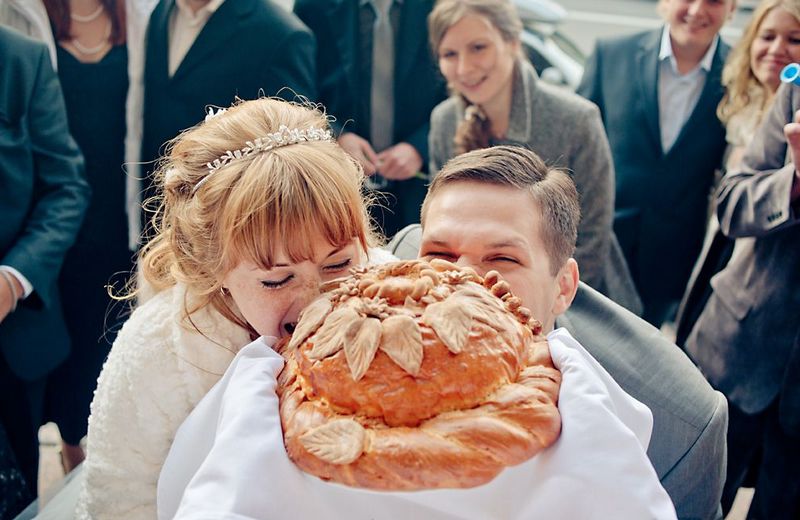 - Bitten by the newlyweds bread carried to their home. The loaf was supposed to finish the man. As they say, the more a young husband eats wedding bread, the sooner the firstborn will appear.