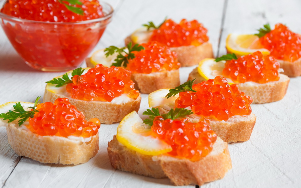 - Baguette with red caviar. And cut along. Caviar is laid in the center. Custom requires you to decide who will be the master in the house. For this, the bride and groom need to bite off a loaf, each from his own side, who has a bit more bitten off, he has the main word in the house.