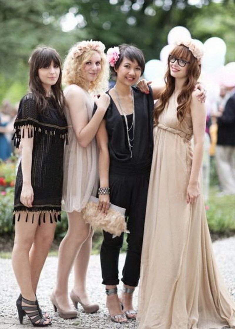 In the modern world, these canons are considered a bit outdated; now there are no clear definitions for the bridal outfit. Therefore, you should definitely clarify what color the future wife’s dress will be in order not to blend in with her image. All attention should be directed towards the newlyweds, so their outfits should be individual. Black dress of guests is also forbidden, because dark colors are associated with sadness.