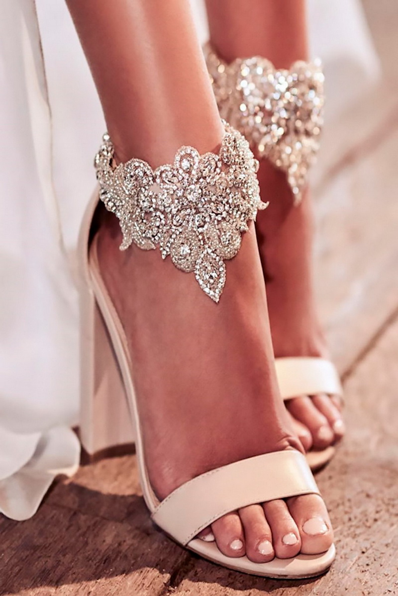 Footwear is an important point in the formation of the image. The wedding is considered an official solemn event, so the heel must be present. But no one forces you to wear high uncomfortable studs. This may be a small steady heel.