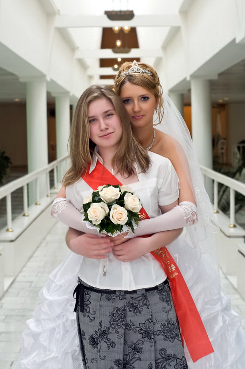 - A friend needs to constantly be a “lifesaver” for the young: accompany her to the restroom, monitor her makeup and the appearance of the decoration. In order to prevent embarrassing situations, girls should have spare stockings, hairpins, napkins, pins and threads with a needle just in case.