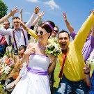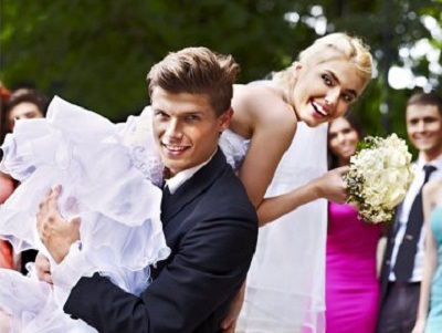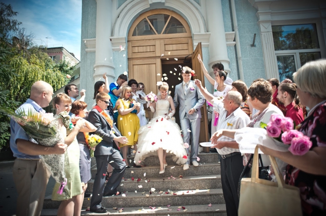 After the official part of the guests waiting for a photo session with the young. Then the guests of the holiday should stand on both sides of the exit from the registry office in order to shower the young with rose petals, rice, coins or sweets.