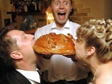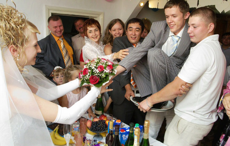 The groom who came along with the matchmakers must remain silent. Elocution should shine exactly matchmakers. After greeting all those present and informing about the purpose of the visit, the matchmakers can come up with an entire kaleidoscope of comic trials and tricky questions for the bride. The same tasks, carefully prepared by the relatives of the bride, are waiting for the groom.