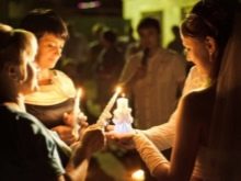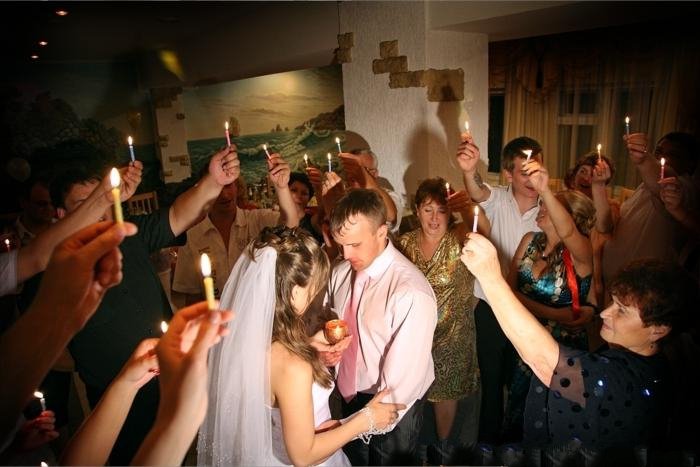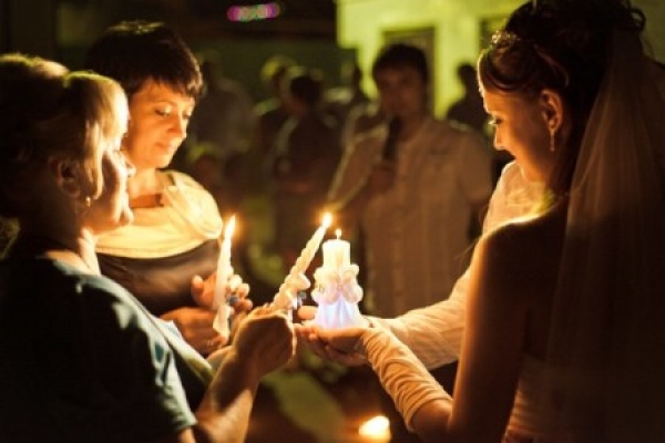 - parents of young people on both sides light their candles and go out into the center of the room, becoming close to their children, light the hearth for a new family from their candles.