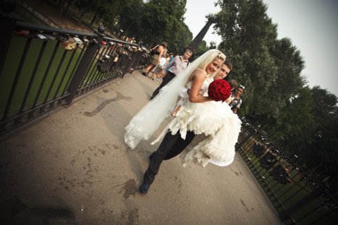 The groom carrying the bride across the bridge is also an inalienable tradition of Russian weddings. According to legends, young people should do the same procedure on seven bridges, then their union will be strong. But in the conditions of modern celebrations and busy main urban highways, this is not always possible, therefore the tradition is observed, but the number of objects is reduced to one. There is also left a memorial castle with the initials of the young as a symbol of the fortress of marriage.