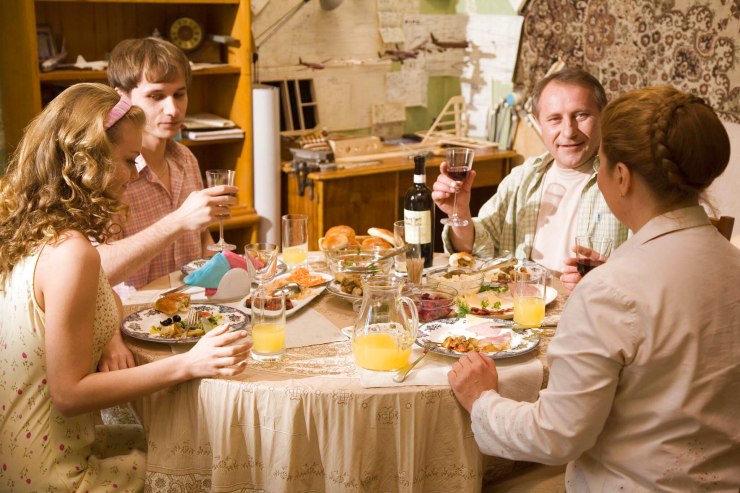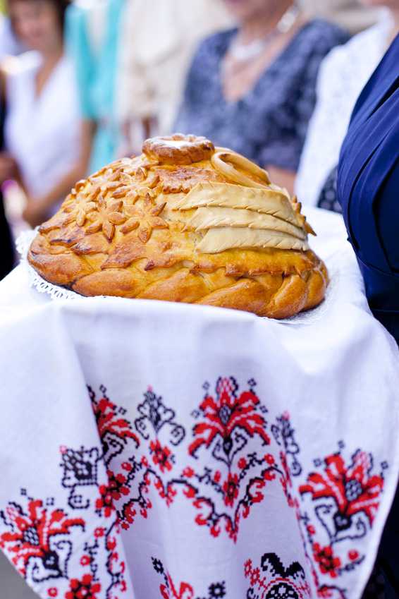 In Russia, the newlyweds after the marriage attended the groom's father's house. The mother-in-law met them with bread and salt (loaf), while her father-in-law was holding icons at that time. The bride and groom had to bite off a piece of loaf. The size of the bitten off piece was determined by the head of the family. Simultaneously, the rite of blessing the new family. Today, the meeting with the loaf is increasingly held in the banquet hall in the presence of guests.