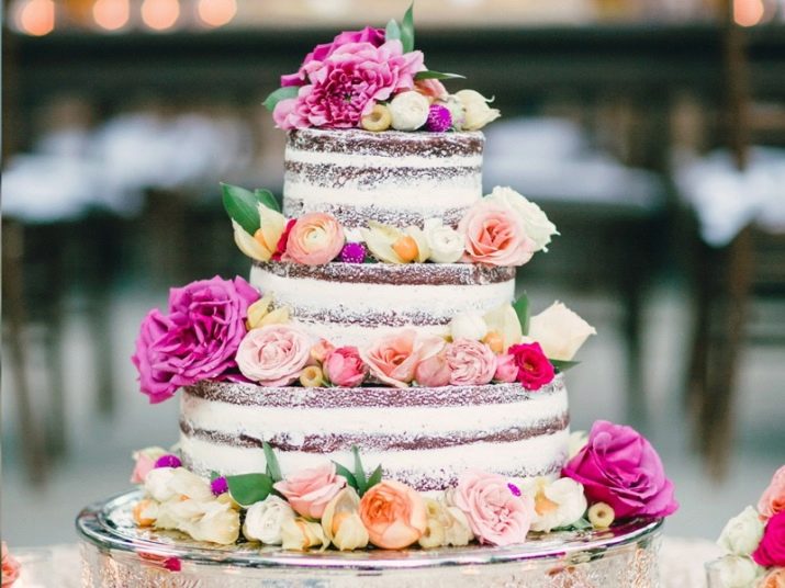 The pastry chefs note that in the last season, cakes with open cake began to be in demand - the so-called naked treats. Wedding designers predict that over the coming years, such treats will remain one of the hits of the newlyweds. In addition, the fashion for chocolate brown cakes is back.