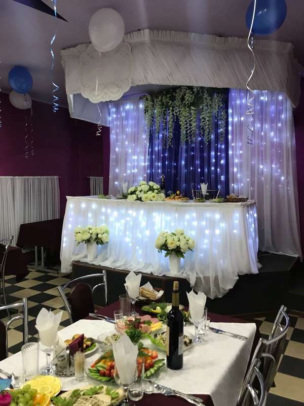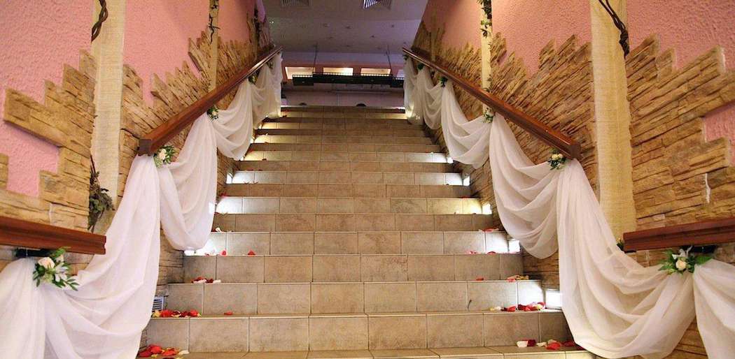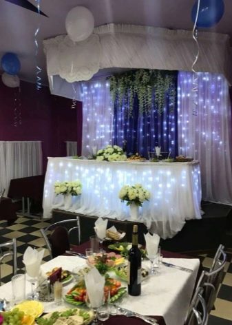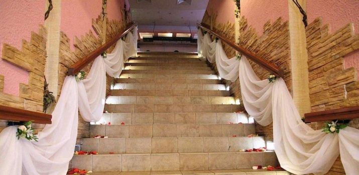 Under this boring name hides a reception that can in a matter of minutes completely transform the hall or street where registration is held. This is quite an expensive item, but it is definitely worth the money spent on it. Stylists advise to drape staircases with white or red material - thus, the passage to the banquet place will be solemn and ceremonial.