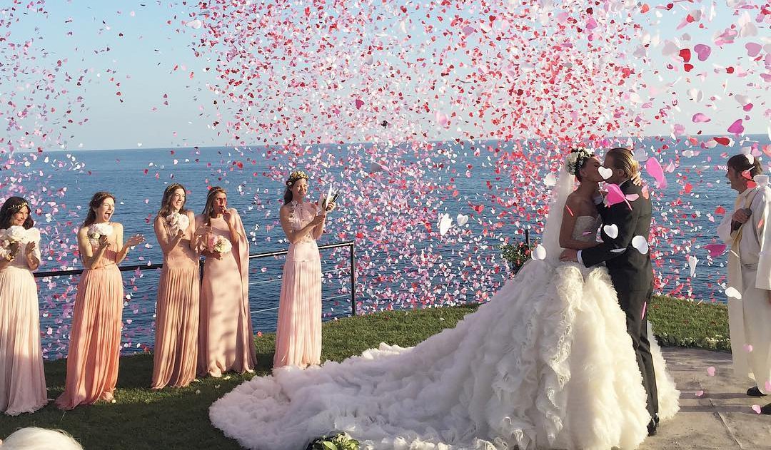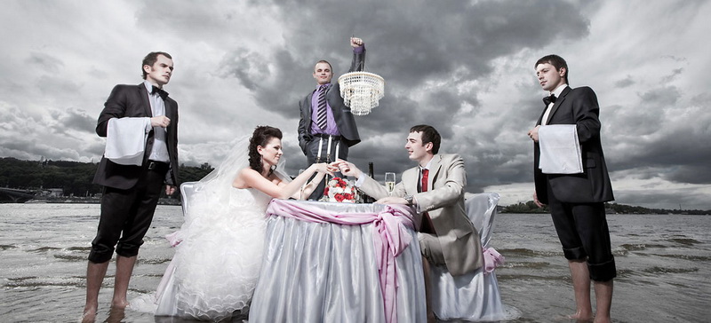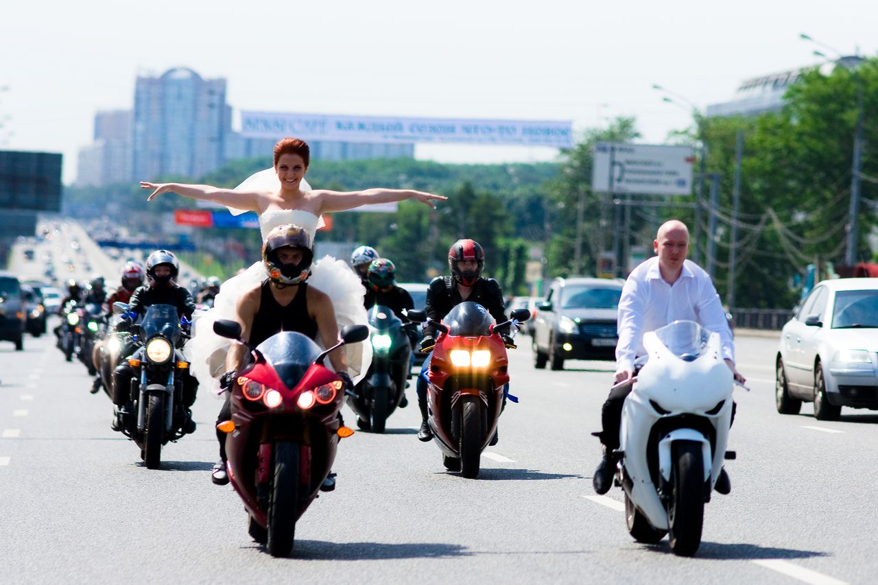 If young people have some kind of common hobby, it will be very original if it is reflected in the wedding event itself. For example, at a biker wedding, a motorcycle motorcade is good, for divers you can offer a themed photo shoot under water in an exotic place. The procedure of exchanging rings in a balloon looks very fascinating - there the spouses can register themselves and go on a journey. By the way, it completely reflects the common saying about the fact that marriages are made in heaven.