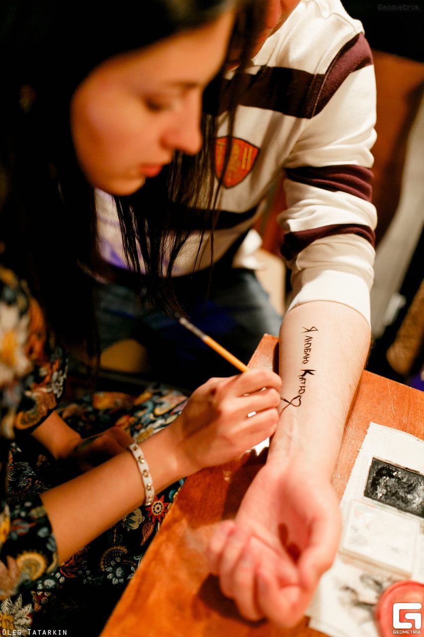 - Tattoo bar. If you have a youth wedding, then you can arrange a small platform on which everyone will receive a temporary tattoo. Only one condition is recommended here - the picture should be directly related to the theme of your event. Let it be the date or phrase from the “best day” series, and maybe someone even wants to fill funny images of young people - the imagination here is almost unlimited.
