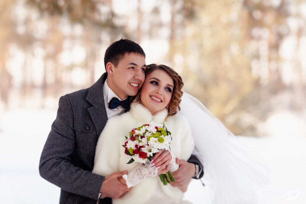 But the most popular winter idea, without a doubt, is a winter fairy tale, here the bride reminds the Snow Queen or princess, her image can be complemented by a crown, a horse drawn carriage.It would be very appropriate to have a fairy tale of its own, which the young will play in front of their guests. In winter, you can arrange a lot of different entertainment: