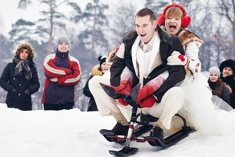 - play snowballs with a team of representatives of the groom against the team of the young bride