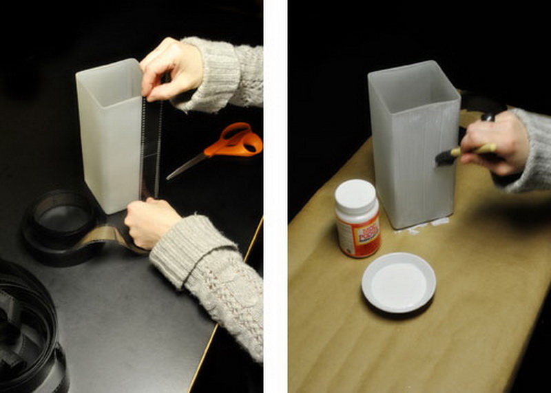Then you need to act quickly - the edges of the branches should be spread with glue and very quickly placed in a jar. To facilitate fastening, you can put a marker on the outside with a marker - then the branch will immediately fall into place and the glue will not have time to dry.