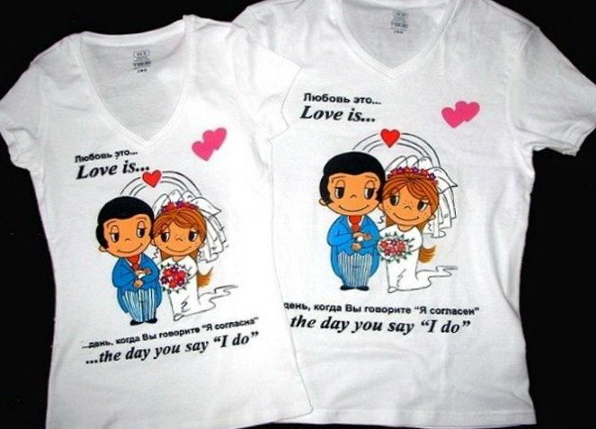 - double souvenirs or clothes - these can be hand-painted statuettes, tableware with inscriptions or pillows with embroidered thick threads with the names of a newly-made husband and wife;