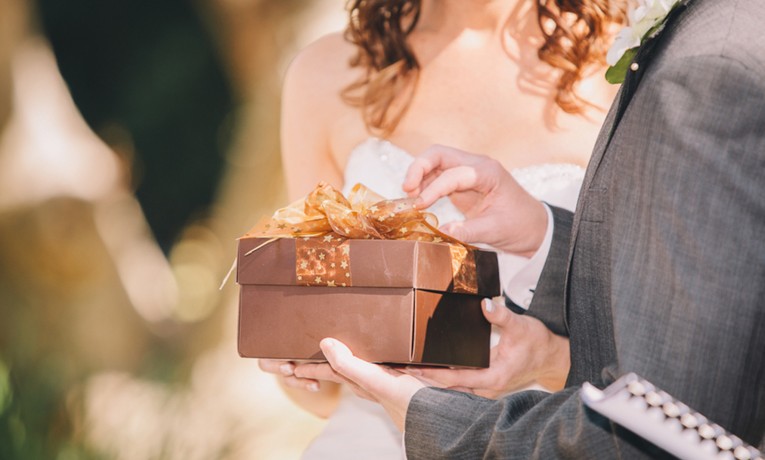 An unusual gift for a girlfriend or friend for a wedding can be a temporary capsule. This is a great idea, because in this way spouses can keep memories of the most exciting events of their life together.