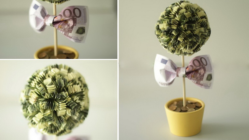 Topiary looks very stylish and original - it is a miniature tree, on the branches of which, instead of leaves, banknotes grow.
