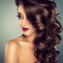 - Large curls. This evening hairstyle is good because it can be applied to both long and medium hair. In addition, for laying it is enough to use only mousse or varnish. This style looks elegant and elegant, harmonizes well with any outfit. Laying start with a canopy strands, then form curls using curling or curlers. Each curl must be fixed varnish and straighten.