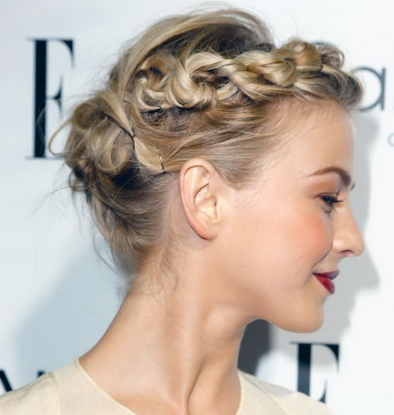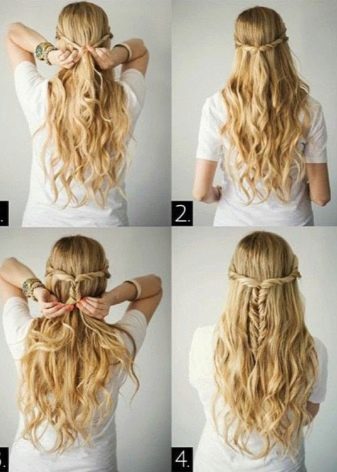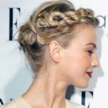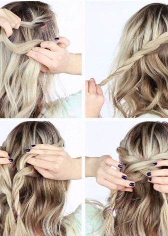 - "Basket". This styling is suitable for medium hair and is often used when you need to create summer hairstyles. They are distinguished by a gentle look and a simple way of decoration. The hair is first washed, then not completely dried and treated with a special gel. Curls become "obedient", they are divided into one even parting and proceed to weave braids from the left temple. The remaining hair can be hidden in the tail, or left, separately wound.