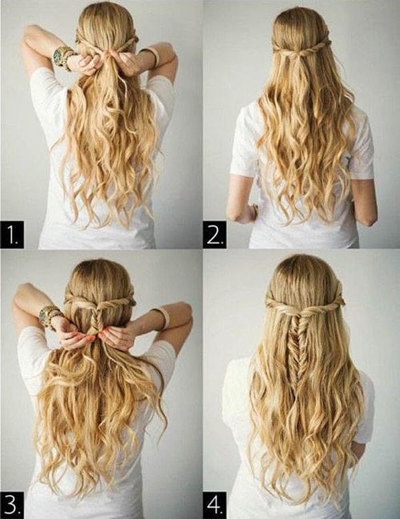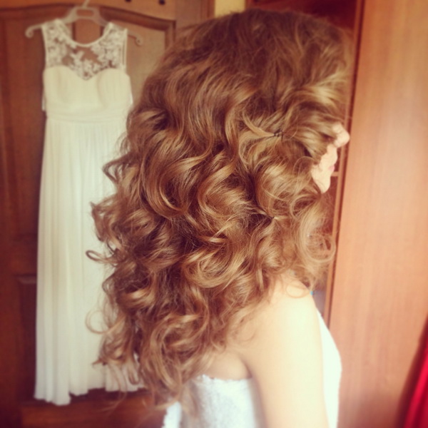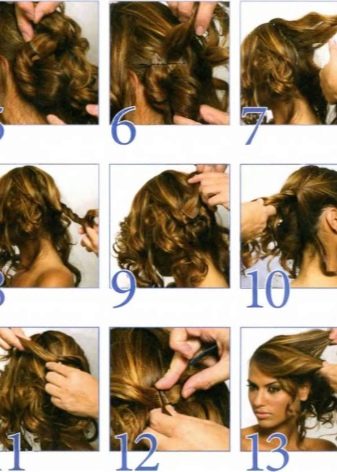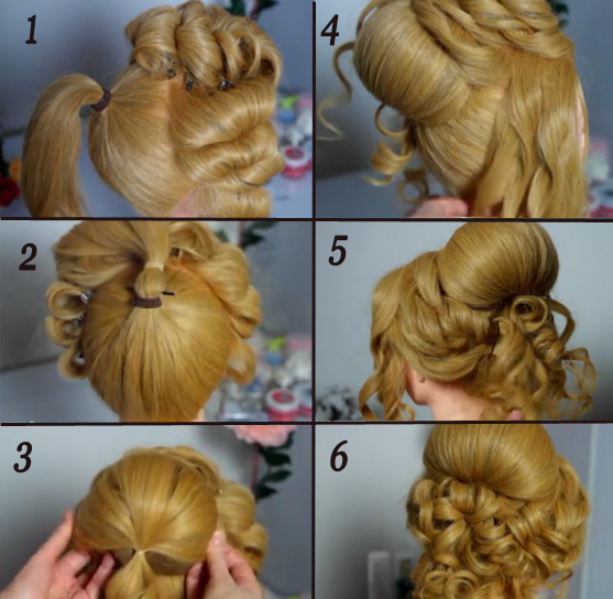 No less attractive will look and hair with a tail. To do this, the hair is washed, dried, then mousse is applied to it and form curls. All strands must be assembled into one large tail and fixed laying invisible or studs. In this case, the hair should be wound clockwise.